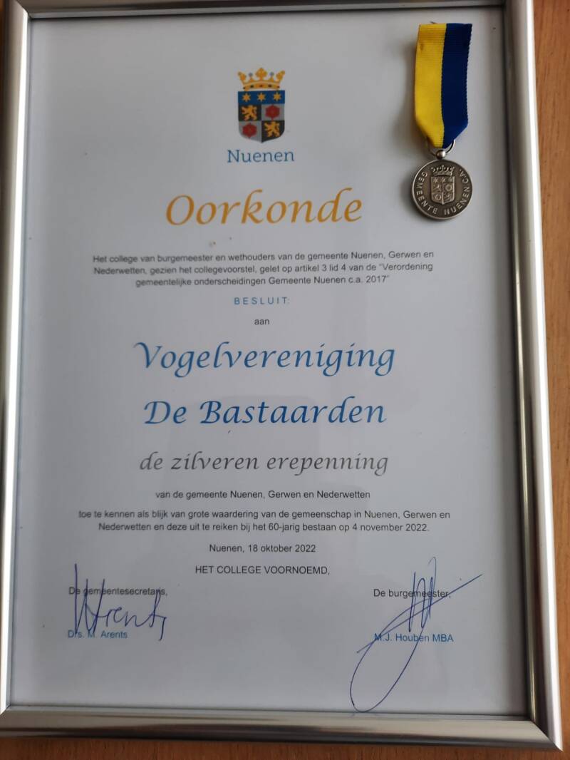 Vogelvereniging De Bastaarden ontvangt zilveren erepenning